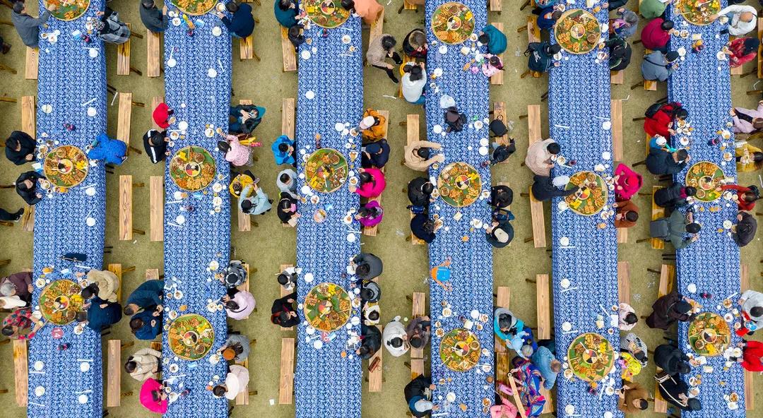 ◎?qū)嵟膱D 千人長(zhǎng)桌宴