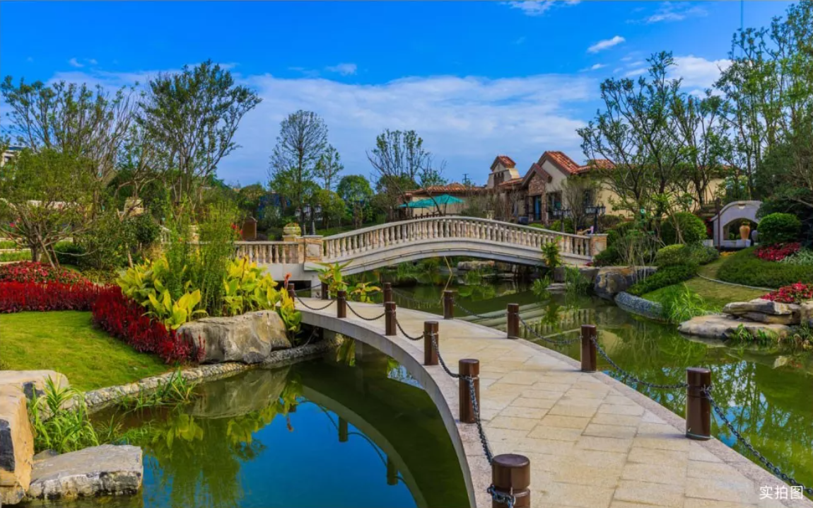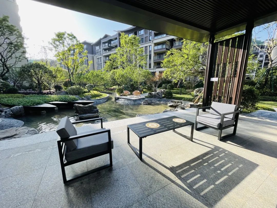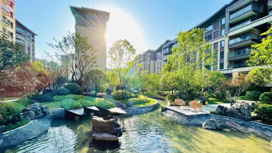 興進·御園交房現(xiàn)場,超低的建筑密度、高綠化的意式園林,一條靈劍溪蜿蜒地從小區(qū)中間穿過,業(yè)主漫步園中,沿溪而行,移步易景,仿若"人在畫中游"。
