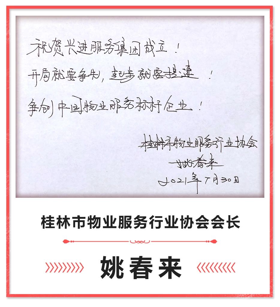 2021年8月1日,桂林市興進(jìn)物業(yè)服務(wù)有限責(zé)任公司正式更名為廣西興進(jìn)物業(yè)服務(wù)集團(tuán)有限責(zé)任公司,在興進(jìn)物業(yè)成立20年之際,象征著又朝公司"5年計劃"邁進(jìn)一步。