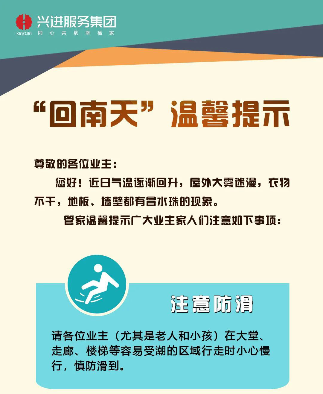用行動將愛心寫實,把文明變成舉手之勞。興進服務集團以高標準、人性化的服務,為10萬+業(yè)主們提供以人為本的居家環(huán)境,建立和睦友善的鄰里關系,營造文明和諧的社區(qū)氛圍,打造滿意度高、生活幸福感強的美好家園。
