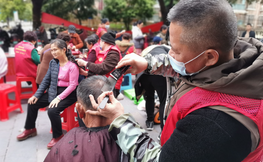 業(yè)主們早早的就在理發(fā)服務的臺前排起了長隊,不少都是沖著興進Tony的手藝來的。對于老人和小孩來說,這種便捷的理發(fā)方式,為他們省去很多麻煩。
