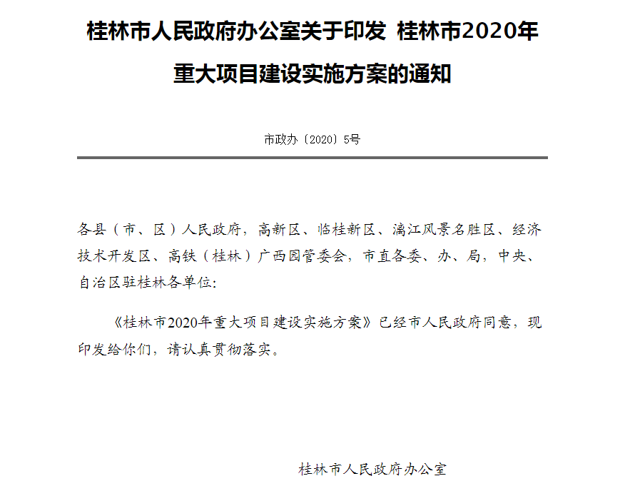 ▲桂林市2020年重大項(xiàng)目建設(shè)實(shí)施方案通知截圖